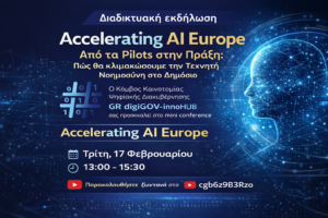 Διαδικτυακή εκδήλωση: Accelerating AI Europe | Από τα Pilots στην Πράξη: Πώς θα κλιμακώσουμε την Τεχνητή Νοημοσύνη στο Δημόσιο