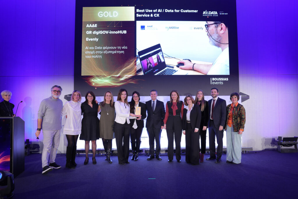 Μία σημαντική αναγνώριση της προόδου που συντελείται στην ανάπτυξη ψηφιακών υπηρεσιών για τον Δημόσιο Τομέα και τη βελτίωση της εμπειρίας του πολίτη στις συναλλαγές του με το Κράτος, με την συμβολή του Κόμβου GR digiGOV-innoHUB, απονεμήθηκε στο πλαίσιο της 2ης τελετής των AI & Data Awards 2026. Η τεχνολογική λύση της εταιρείας Evenly που εφαρμόστηκε πιλοτικά στο πλαίσιο του Κόμβου με στόχο τη συμπερίληψη και την ισότιμη πρόσβαση όλων των πολιτών σε ψηφιακές υπηρεσίες της Ανεξάρτητης Αρχής Δημοσίων Εσόδων (ΑΑΔΕ), διακρίθηκε με gold award στις 27 Ιανουαρίου, στην κατηγορία “Best Use of AI/Data for Customer Service & CX” της ενότητας “AI / Data Value & Ecosystem”.