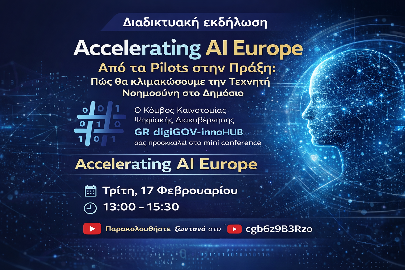 Διαδικτυακή εκδήλωση: Accelerating AI Europe | Από τα Pilots στην Πράξη: Πώς θα κλιμακώσουμε την Τεχνητή Νοημοσύνη στο Δημόσιο